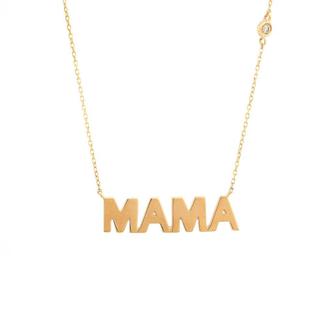 Yellow Gold Mama Single Bezel Diamond Necklace (14k “mama” Necklace With Bezel Set Diamond (16+2″))
