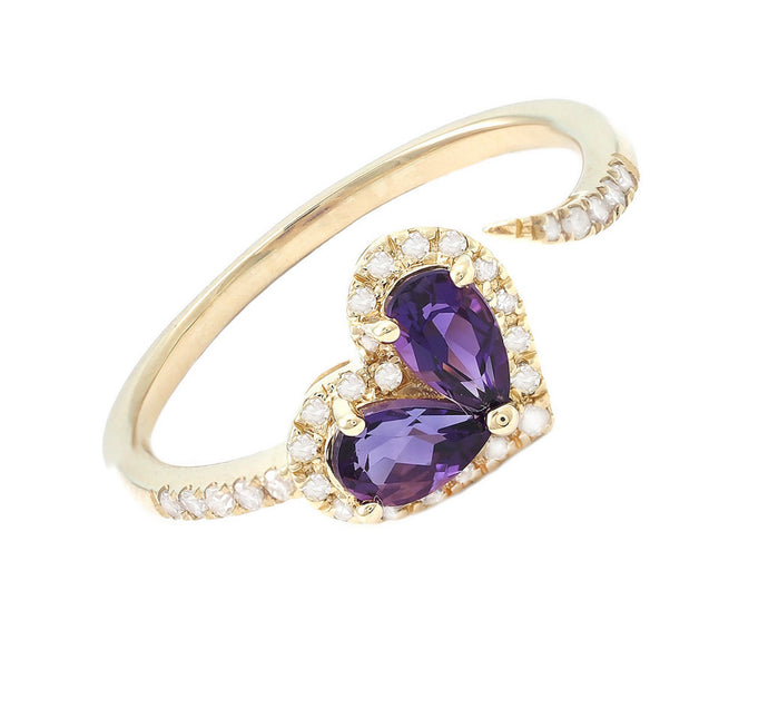 Yellow Gold Fashion Pear Prong Amethyst Ring (Heart Shape Fashion )